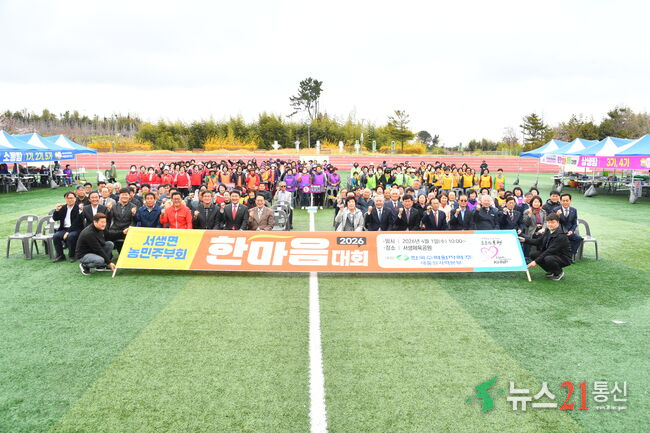 울주군 서생농협이 1일 서생체육공원에서 주부대학총동창회 및 서생면농민주부회 2026년 한마음대회를 개최한 가운데 최남식 조합장, 이순걸 군수, 울주군의회 김시욱 운영위원장 및 시군의원 등 참석자들이 기념촬영을 하고 있다.